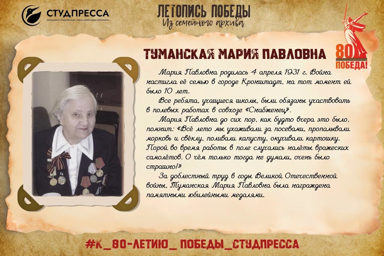 Когда началась война, Марии было всего 10 лет. Вместе с семьёй она пережила суровые годы блокады.