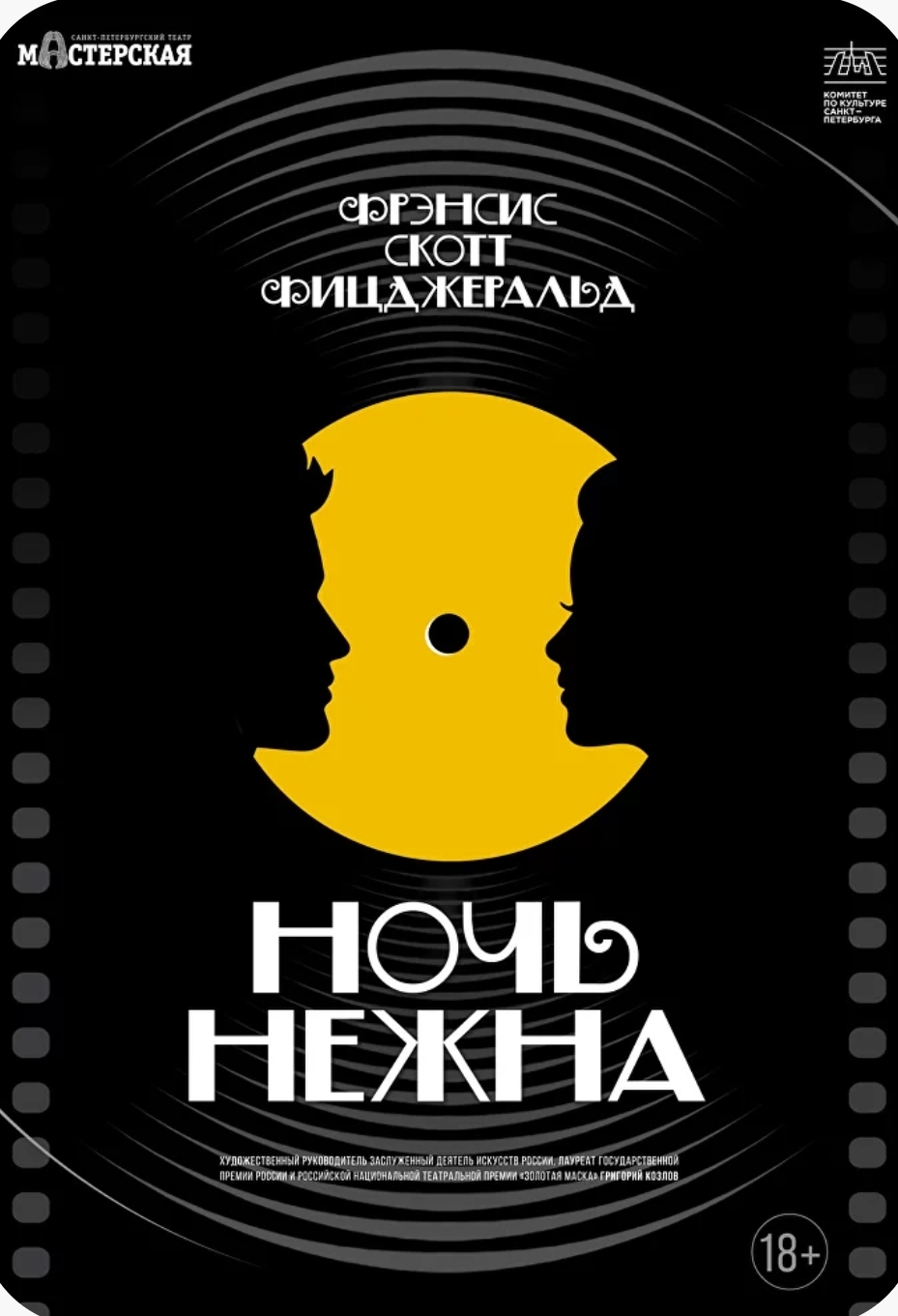 Новая постановка театра «Мастерская» основана на романе Фрэнсиса Скотта Фицджеральда «Ночь нежна». Один из самых ярких писателей-представителей межвоенного «потерянного поколения», Фицджеральд использовал в этом произведении элементы собственной биографии. Его жена Зельда, как и героиня романа Николь, страдала шизофренией. Их жизнь напоминала фейерверк, пара не сходила со страниц светских хроник и славилась непомерным употреблением алкоголя. Так и герои книги – врач-психиатр Дик Дайвер и его супруга и экс-пациентка Николь, представители богатой чикагской аристократии – ведут подобный богемный образ жизни. После женитьбы на Николь Дику приходится совмещать две роли – мужа и врача, в результате чего их брак терпит крах.